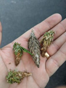 While some people recommend hand-picking bags containing bagworm eggs and putting them in soapy water, this is not very effective. Not only is it easy to miss bags that can easily contain hundreds of eggs, but simply pulling the bag off will leave the silk thread, which will girdle the branch and eventually kill it. If you are choosing to hand-pick the bags, make sure to use a sharp knife or shears to remove the silk thread.Cutting off Branches