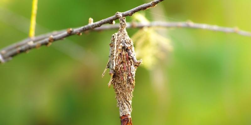 Bagworms (Thyridopteryx ephemeraeformis), also known as evergreen bagworms, are not worms at all—rather they are caterpillars that are known for their unique shelters. These insects spend the majority of their lives inside cocoon-like bags that are about 1.5 to 2 inches long. These bags are spun out of silk and strengthened using camouflaging bits of foliage, such as pine needles, twigs, leaves, or pieces of bark.